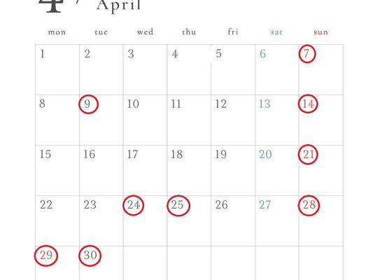 4月の営業日について